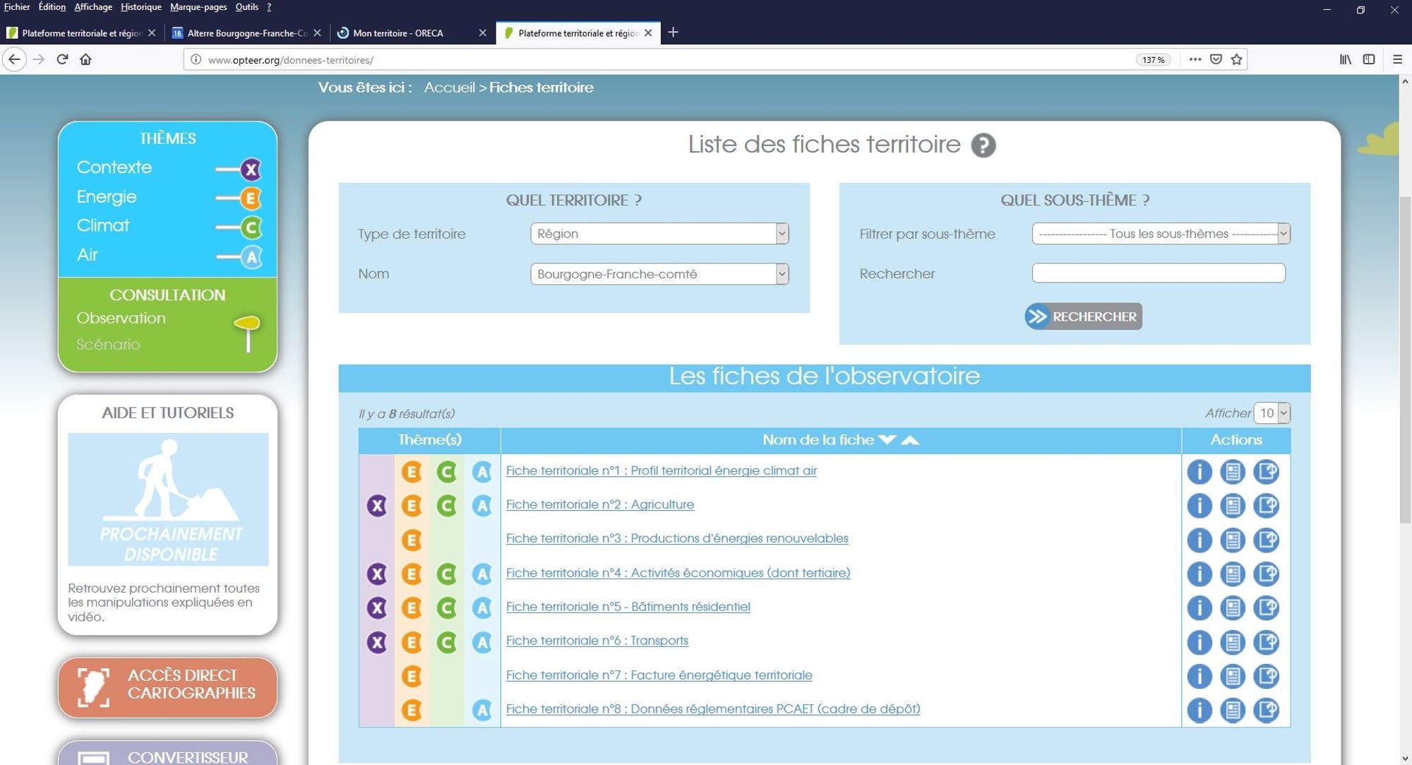 L’ORECA vient de produire huit fiches territoriales dynamiques disponibles sur la plateforme OPTEER.