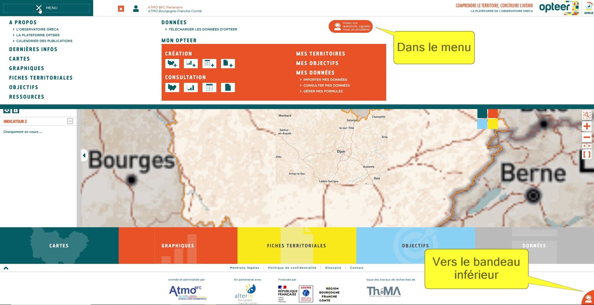 Le bouton « Accompagnement » est accessible sur toutes les interfaces de la plateforme à deux endroits :